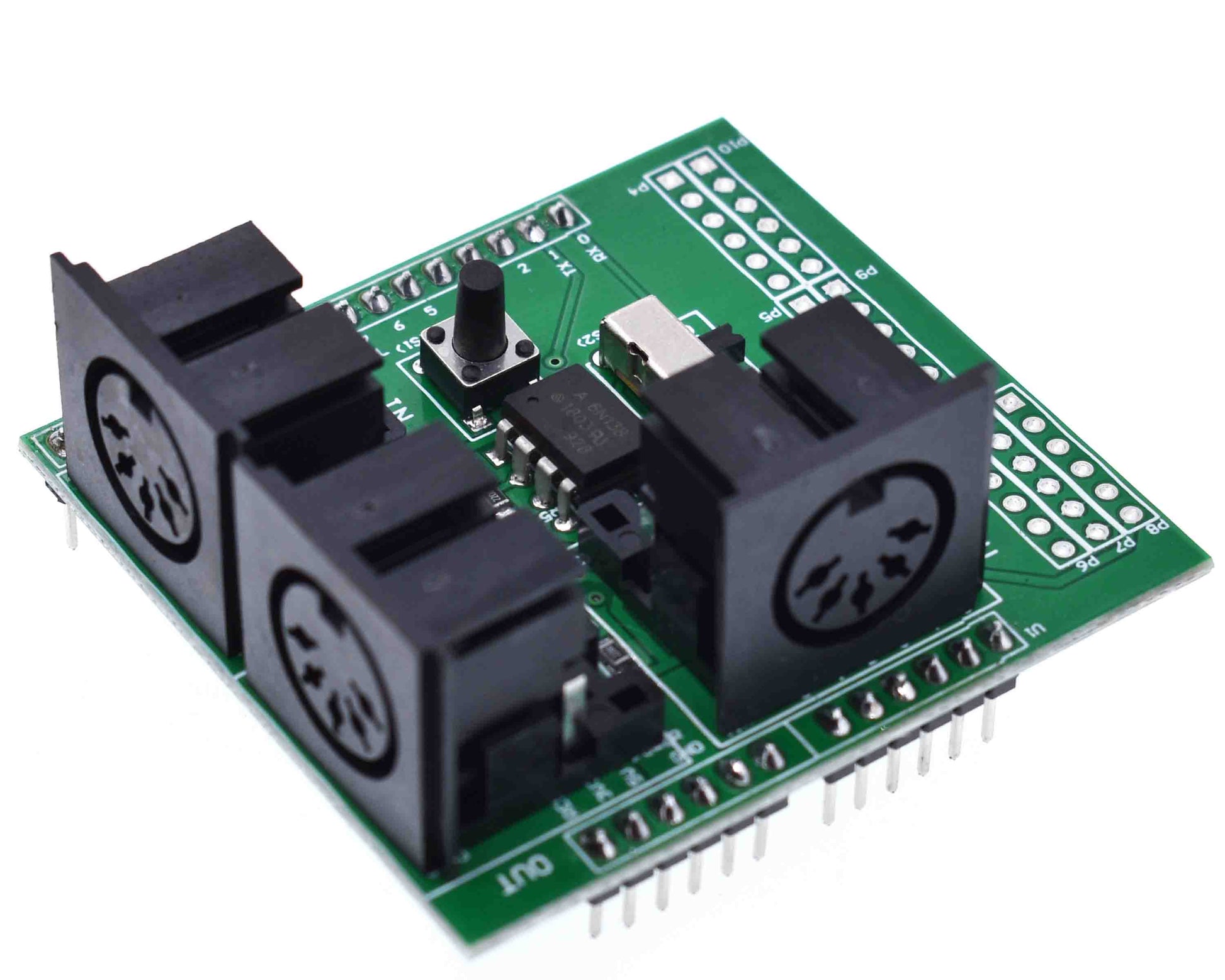 Need to add MIDI capabilities to your Arduino project? Try our ready-to-use 3 connectors MIDI shield.